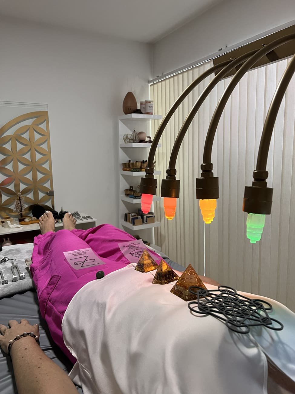 Sesión de alineación, armonización y equilibrio del cuerpo, promueve la relajación,